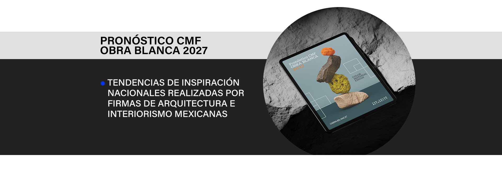 Este año, el Pronóstico CMF Obra Blanca 2027, se realizó en 3 regiones en alianza con The Color Autorithy —empresa especializada en CMF— y el apoyo de 20 firmas de arquitectura e interiorismo consolidando un espacio de diálogo multidisciplinario que enriquece la mirada sobre lo que viene. Las sesiones de trabajo en Monterrey, Mérida y Ciudad de México permitieron identificar patrones emergentes, reinterpretar referentes globales desde una perspectiva local, y aterrizar conceptos en paletas materiales que reflejan la identidad contemporánea de México. Las tendencias resultado de este ejercicio serán presentadas en octubre en el Espacio Obra Blanca en la exposición.