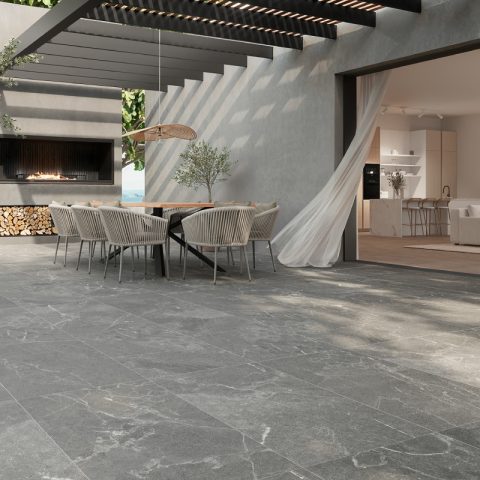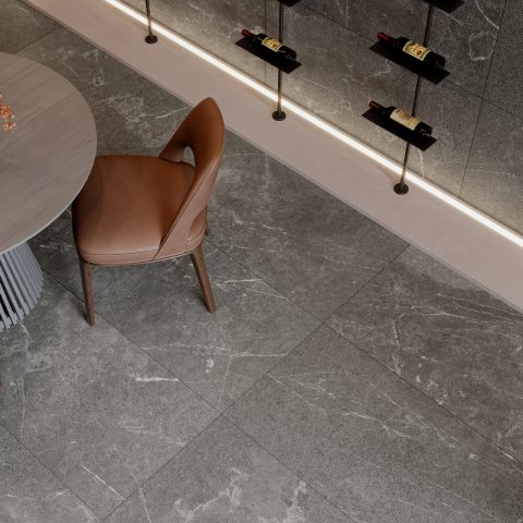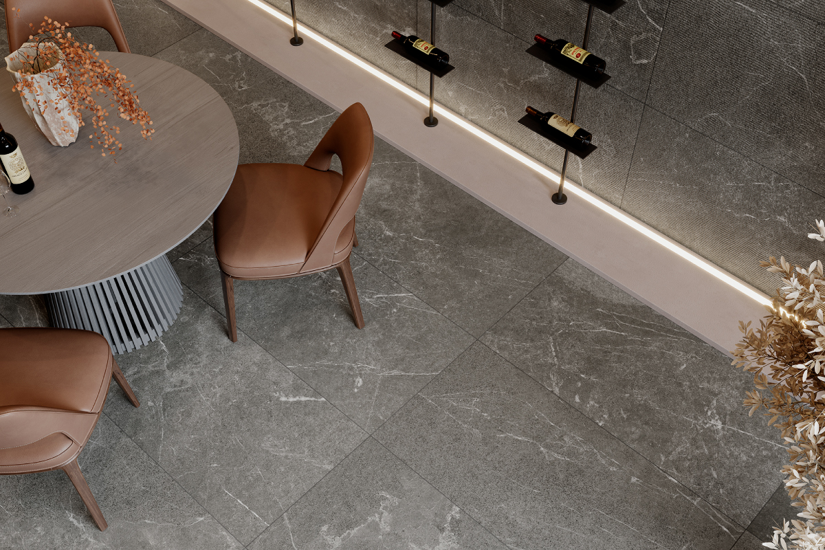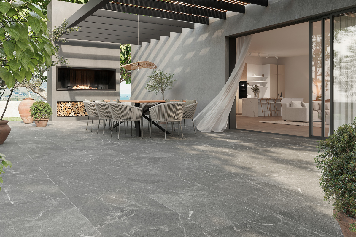 Indigo es un porcelanato gris oscuro en formato 60×120 cm, con acabado grip ideal para zonas húmedas y exteriores. Su tono profundo se convierte en protagonista en espacios modernos que buscan romper la monotonía. La textura ondulada de este porcelanato en acabado rigato, transforma cualquier superficie en un punto focal lleno de carácter y movimiento.