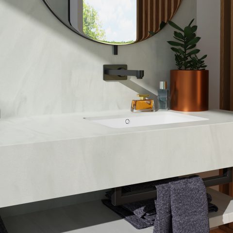 Artista Sage de Corian® es un color de superficie sólida que destaca por su estética suave y contemporánea. Presenta una base verde salvia clara, matizada con partículas finas en tonos grises, blancos y verdes más oscuros, creando una textura sutilmente moteada que aporta profundidad sin distracciones visuales. Su acabado delicado y moderno lo convierte en una elección ideal para espacios que buscan una atmósfera tranquila, natural y sofisticada. Artista Sage armoniza especialmente bien con maderas claras, acabados mate y elementos en tonos tierra o neutros. Además de su atractivo visual, conserva las propiedades técnicas de Corian®: es no poroso, fácil de limpiar, resistente al uso diario y adecuado tanto para aplicaciones horizontales como verticales en entornos residenciales o comerciales.