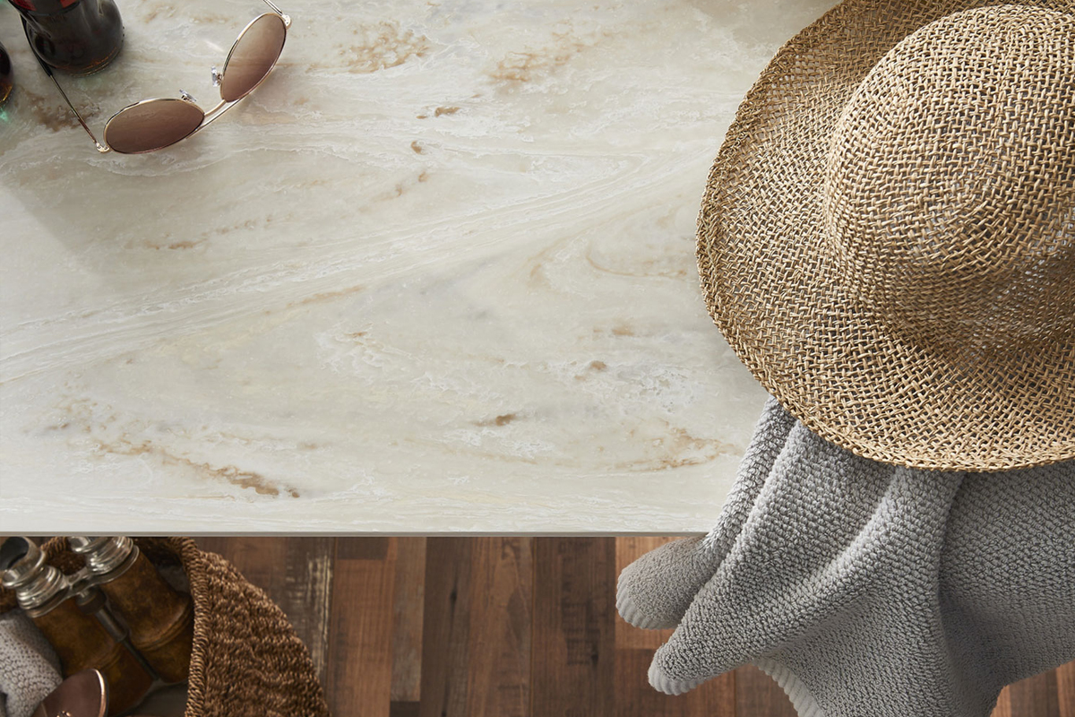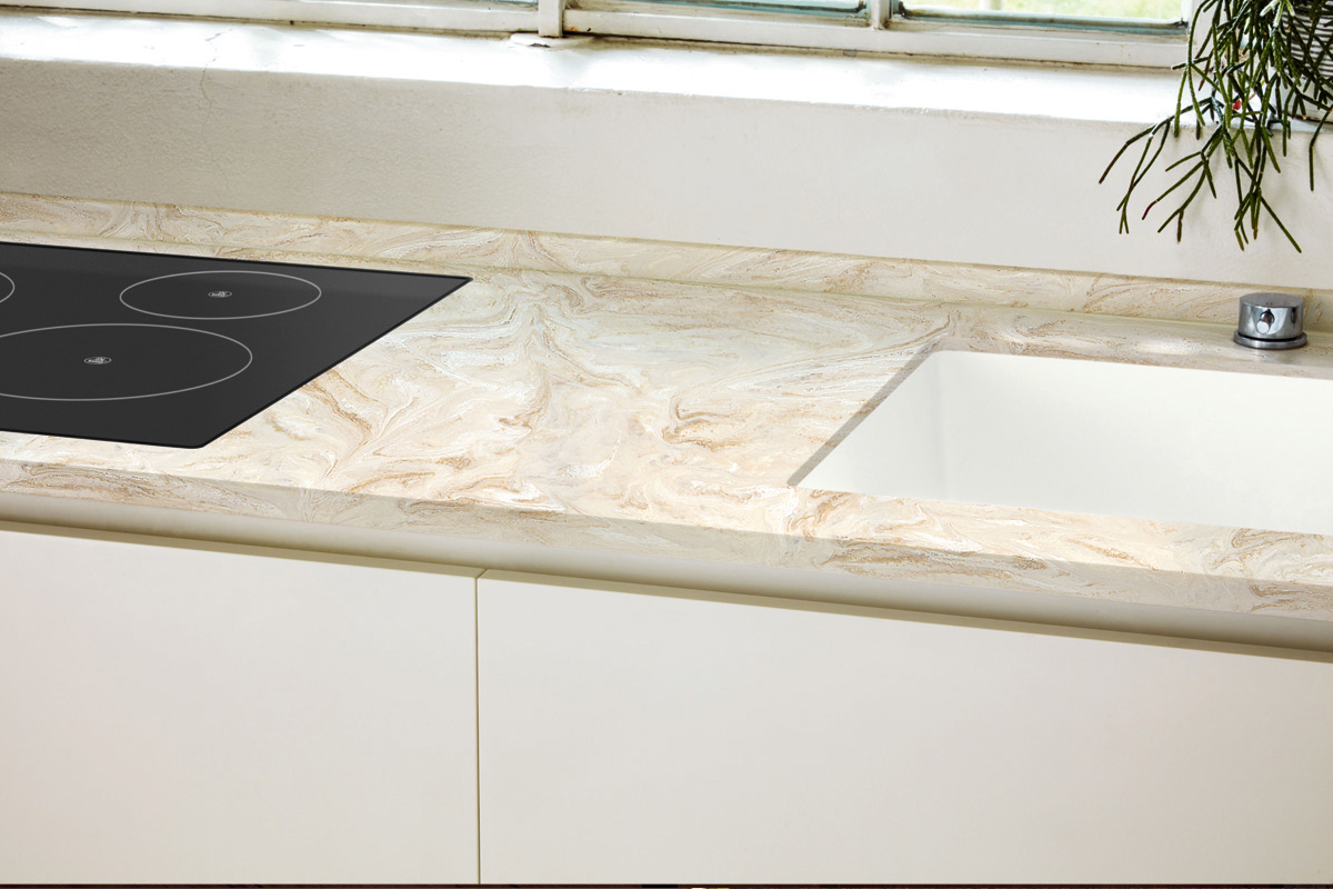 Dune Prima de Corian® es un color de superficie sólida que evoca la calidez y textura natural de la piedra erosionada por el tiempo. Su base beige suave está matizada con vetas fluidas en tonos crema, marrón y gris claro, creando un efecto orgánico y dinámico que varía sutilmente en cada plancha. Esta estética naturalista lo convierte en una opción versátil y elegante, ideal para ambientes contemporáneos, rústicos o minimalistas. Gracias a su diseño con profundidad visual y su patrón no repetitivo, Dune Prima ofrece una apariencia sofisticada que combina perfectamente con materiales como madera, acero inoxidable o concreto. Además de su atractivo estético, conserva las propiedades distintivas de Corian®: superficie no porosa, resistente, fácil de mantener y apta para aplicaciones horizontales y verticales en espacios residenciales o comerciales.