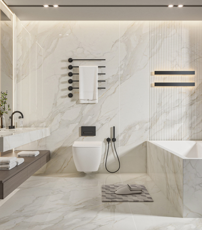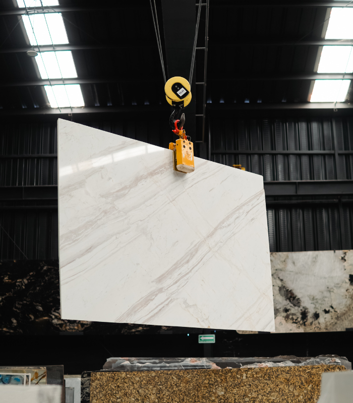 Mármol blanco de importación con vetas grises suaves y ocasional tonalidad en tonos beiges. Su apariencia limpia y sofisticada lo hace ideal para interiores contemporáneos que requieren luz, elegancia y sobriedad.