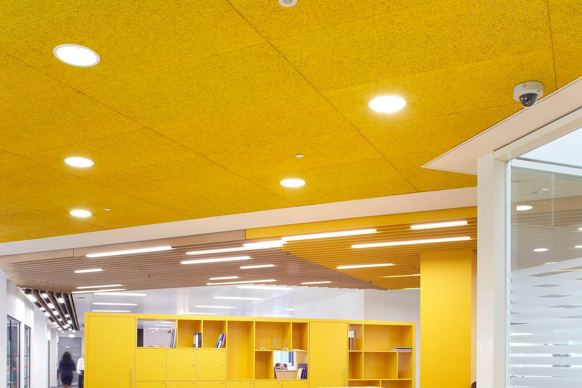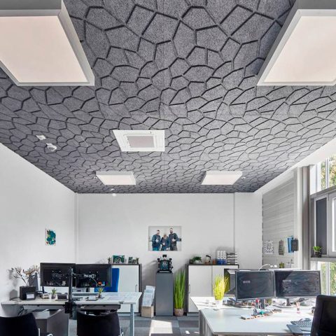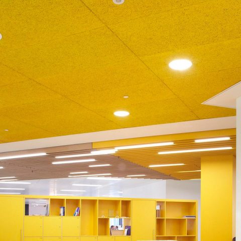 HERADESIGN® Creative de Knauf Ceiling Solutions es un panel acústico para plafones, paredes, islas, blaffes y mucho más.