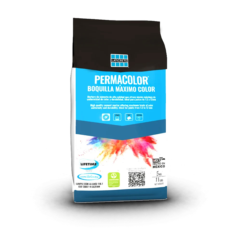 Boquilla PERMACOLOR Máximo Color es un mortero de alto rendimiento y fraguado rápido que proporciona una junta densa y dura, produce un color uniforme. Se mezcla con agua únicamente.