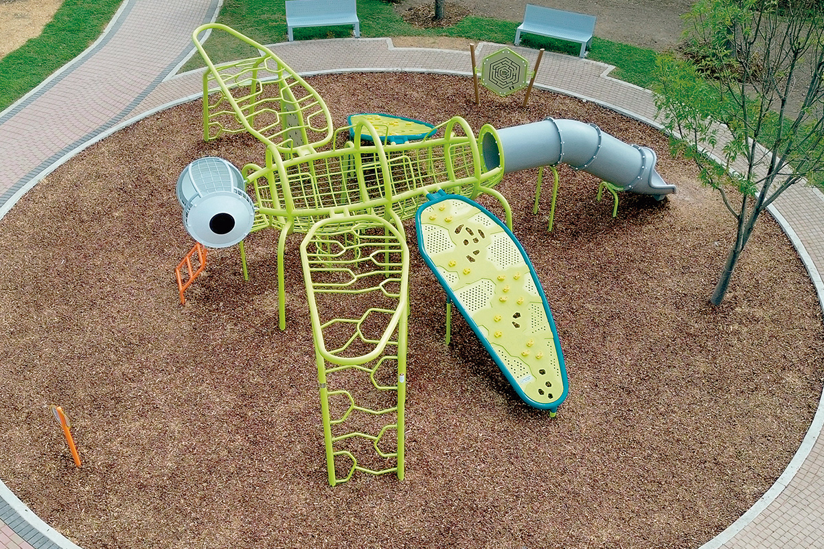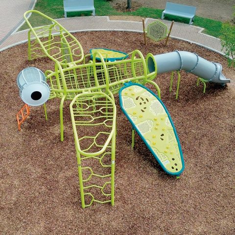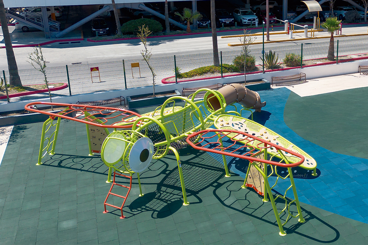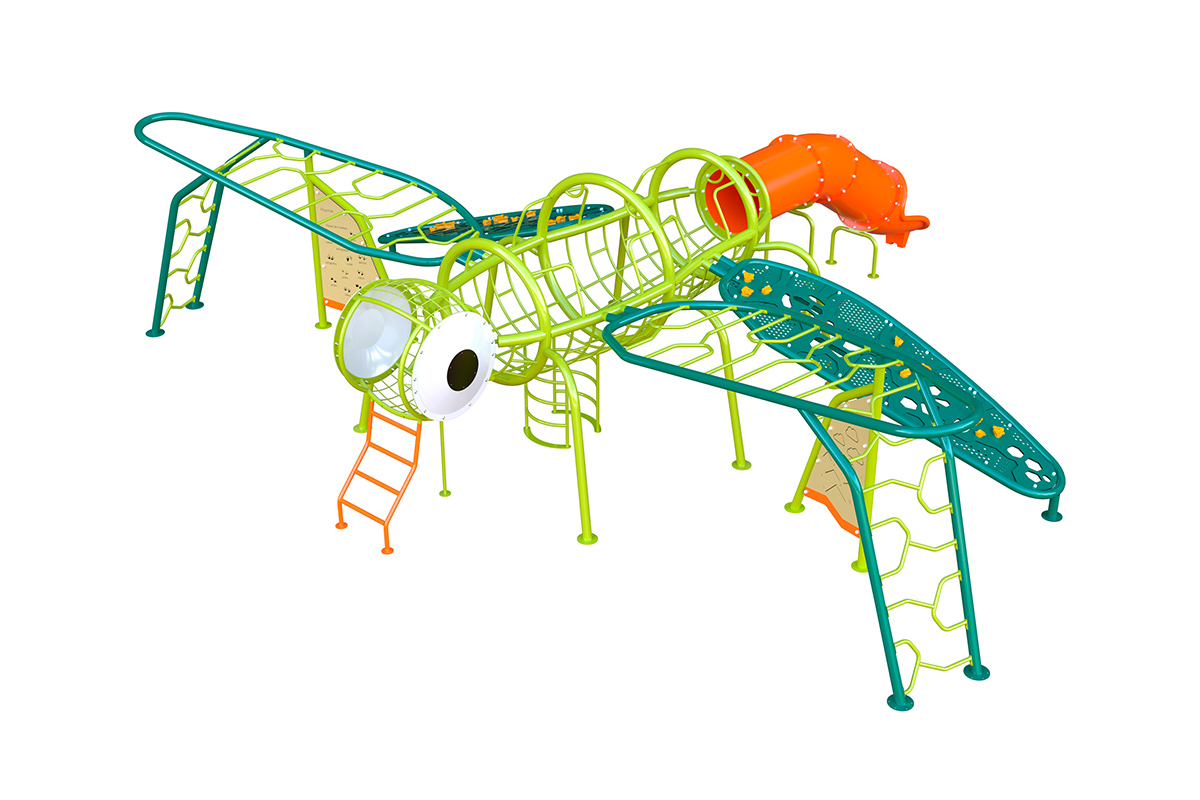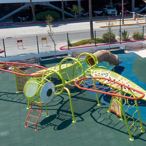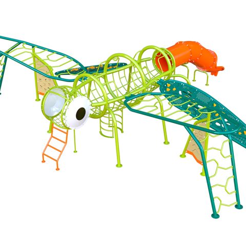 Juego infantil temático que contiene; 1 tobogán recto, Trepador cóncavo reticulado, 2 rapeles de piedras inclinados, 1 trepador de metal vertical, 2 pasamanos asimétricos, 1 escalera torcida, 2 paneles didácticos con doble actividad. Acabado en pintura electrostática, libre de metales pesados, que garantiza una mayor durabilidad del producto. Componentes de plástico de alta densidad con protección UV.