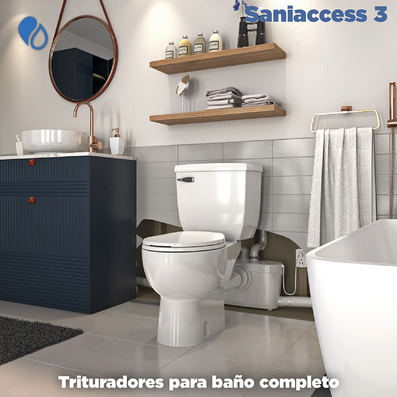 Instale un baño completo (inodoro, lavabo, regadera) en aplicaciones residenciales, sin romper el piso. Evacúe hasta 5 metros de manera vertical y hasta 45 metros de forma horizontal cuando tiene problemas con el sistema de gravedad tradicional.