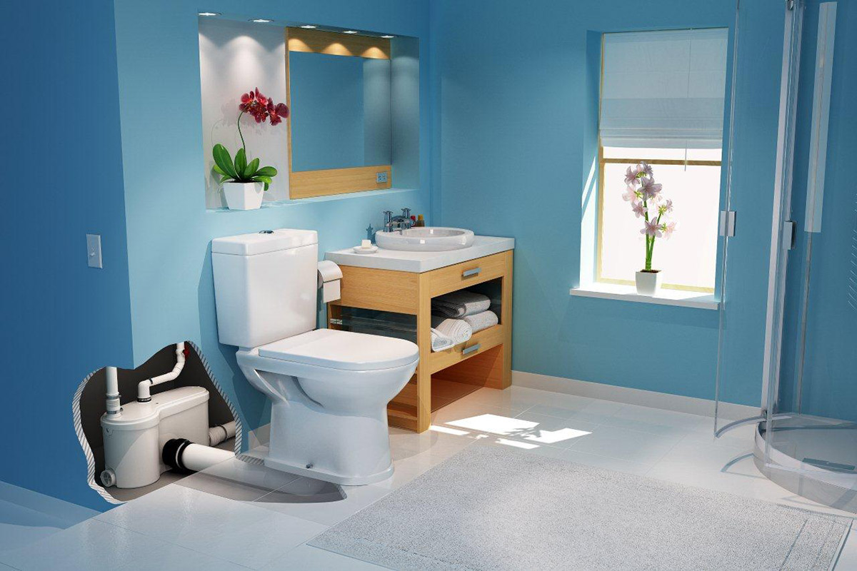 Instale un baño completo (lavabo, inodoro, tina) con descarga de hasta 8 metros verticales de la línea de alcantarillado, o incluso hasta metros de distancia.