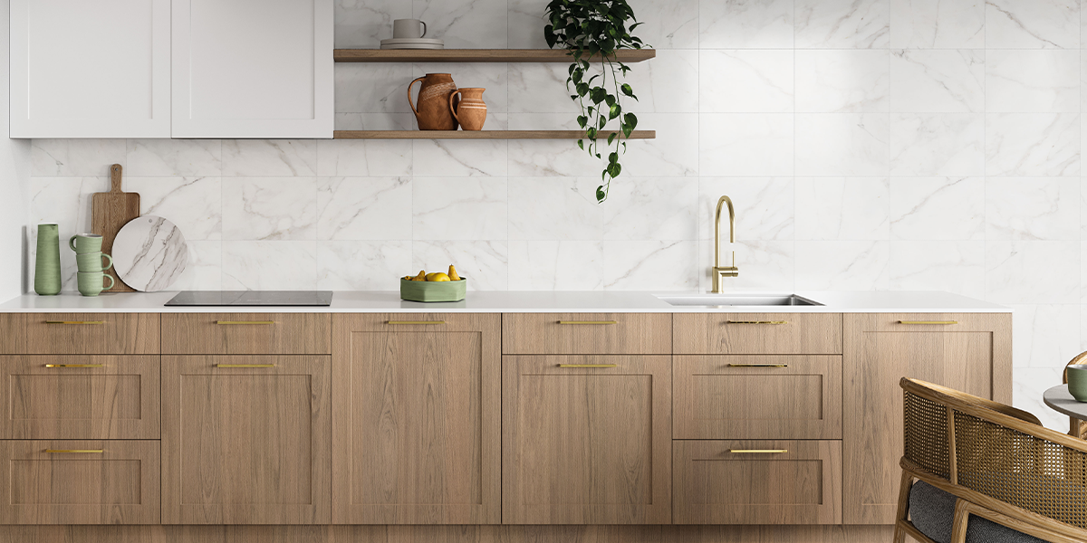 Si lo que buscas es darle un toque elegante y atemporal a un muro, el mármol (o su apariencia) siempre es una gran opción. Usar cerámicos marmolados en tonos claros y en formatos grandes ayuda a crear superficies visualmente limpias y con mucha presencia. Amur Gris en 55×55 cm y Basalty Gris en 60×60 cm, de Lamosa, logran justo eso.